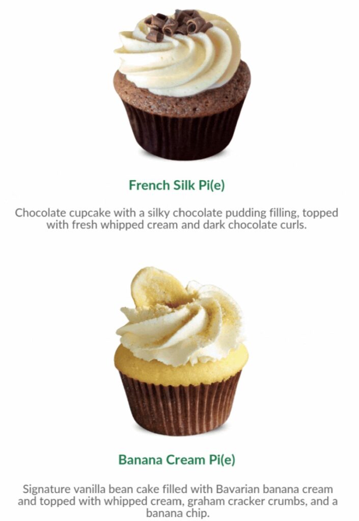 Oh My Cupcakes is celebrating Pi Day on Friday with two pie-themed cupcakes: French Silk Pi(e) and Banana Cream Pi(e).