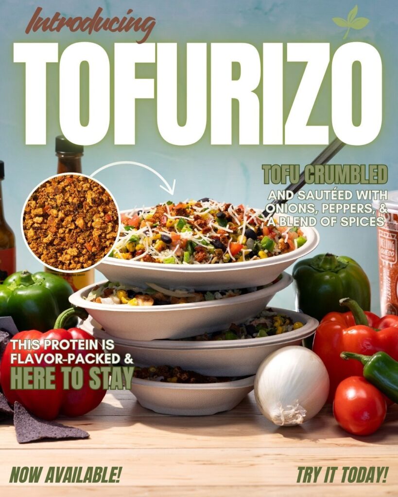Pancheros Mexican Grill has introduced Torfuizo, a plant-based protein, that can be part of any entree. It’s tofu that’s crumbled and sauteed with onions, peppers and spices.