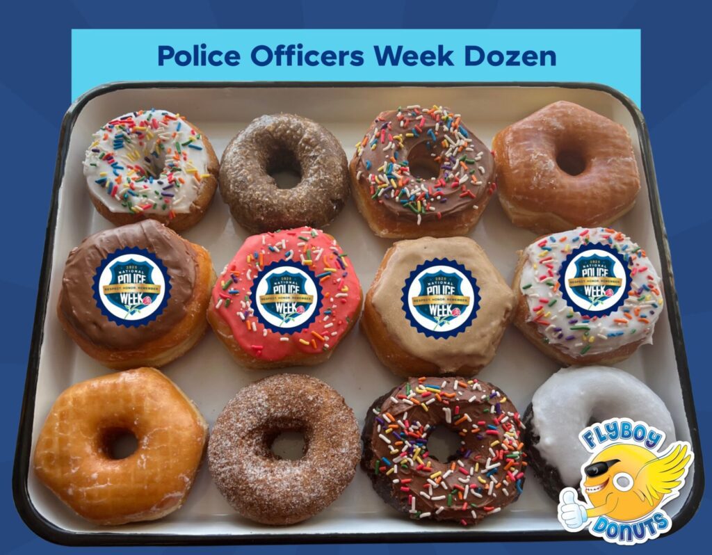 Order the Police Officers Week Dozen from Flyboy Donuts and the shop will deliver a dozen doughnuts for free to local law enforcement during another week. The offer is good through Saturday.