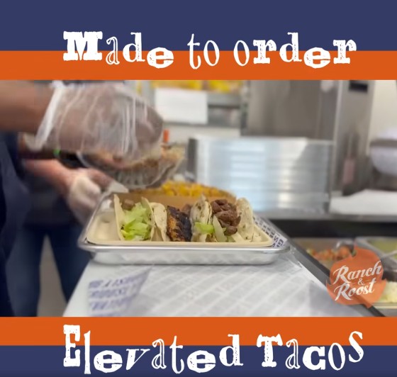 The new Ranch & Roost at Lake Lorraine has added Elevated Tacos to its lineup. Meat choices are chicken or marinated steak, which are grilled to order. They come in a flour tortilla with lettuce, Revo sauce, pico de gallo, queso and cilantro. Orders include three tacos, and customers can get a mix of chicken or steak. For a side, choose roasted street corn.