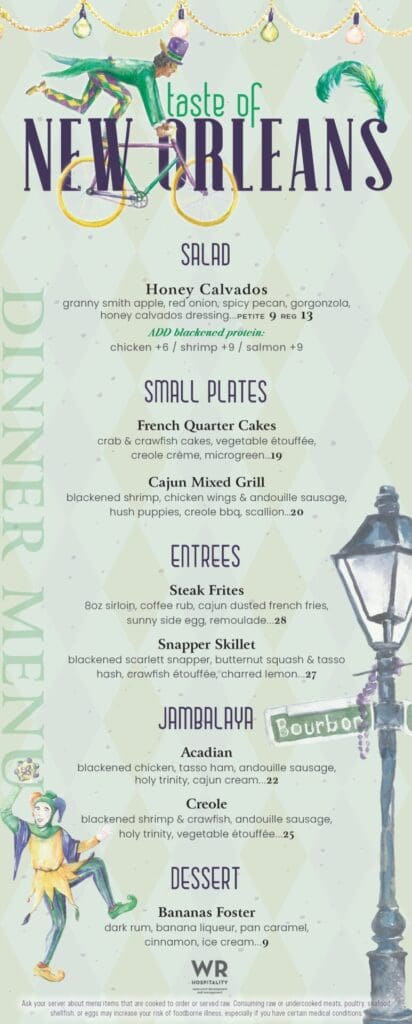 The Taste of New Orleans featured menus are available for a limited time at 22Ten Kitchen Cocktails.