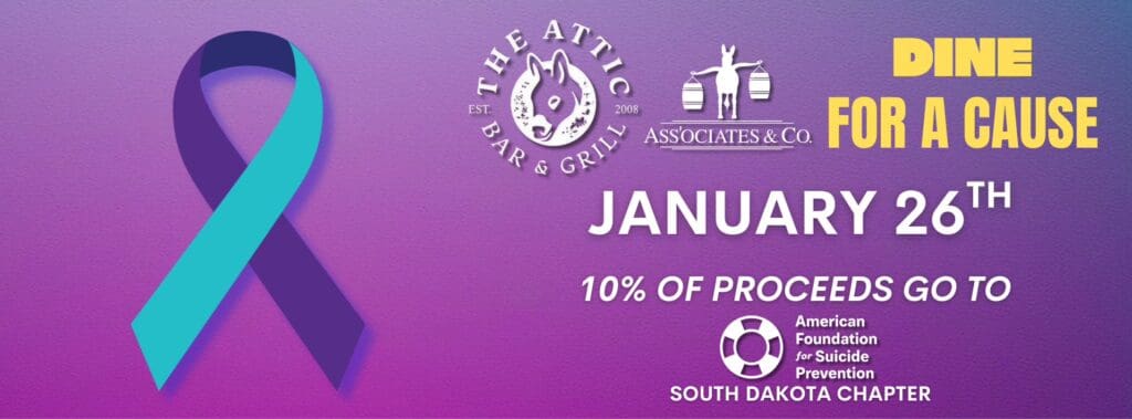 The east-side Attic Bar & Grill and Ass’ociates & Co. are donating 10 percent of dining sales from 11 a.m. to 7 p.m. Monday to the South Dakota chapter of the American Foundation for Suicide Prevention.