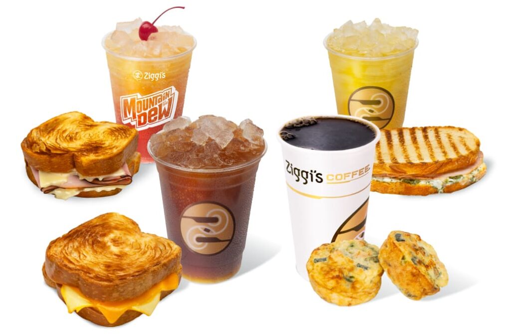 Ziggi’s Coffee has several new food items on the menu. One new egg bite has bacon, cheddar cheese and green chiles. The other has tomato, spinach, kale and feta with egg whites. There’s a Cheesy Chicken Melt in a flour tortilla, grilled cheese or ham and cheese on a croissant, and a panini with turkey, provolone and pesto. For dessert, Frosted Lemon Bread and Cookies ‘N Cream Cake Pop have returned for a limited time.