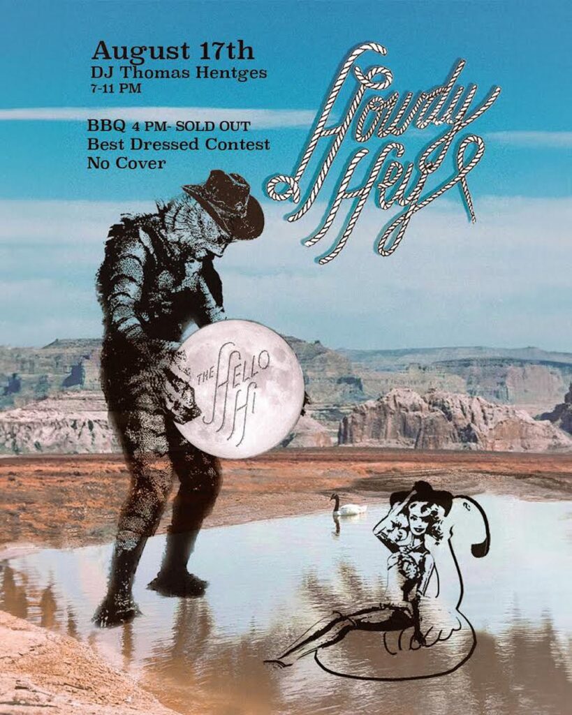 En Place Catering will be selling barbecued smoked wings for The Hello Hi’s Howdy Hey party Aug. 17. Serving starts at 4 p.m. There will be featured cocktails, a best-dressed contest, and Thomas Hentges will DJ with country music from 7 to 11 p.m.