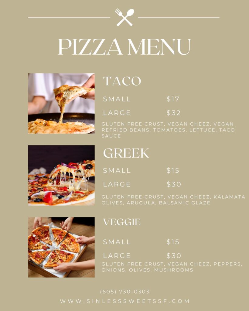 Sinless Sweets, which closed its storefront last month and returned to custom orders and online sales, is having a pizza night Friday. Place orders by noon for pickup in the evening. Owner Maggy Pickner is offering three gluten-free, vegan offerings in two sizes. Place orders at sinlesssweetssf.com.