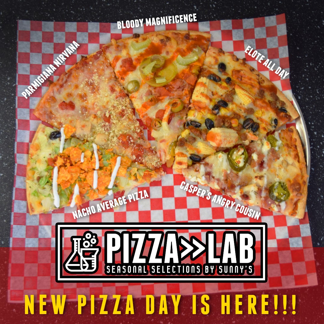 New seasonal pizzas have arrived at Sunny’s Pizzeria. The Bloody Magnificence is a bloody mary-inspired pizza that even comes with a beer back. Casper’s Angry Cousin features a ghost pepper sauce with chicken, bacon, jalapenos, bleu cheese and ranch. Elote All Day has all the flavors of Mexican street corn, Nacho Average Pizza gets topped with Doritos and Parmigiana Nirvana will be a hit with those with like chicken parm.