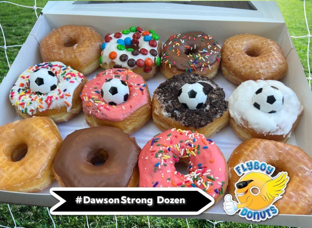 Through Saturday, order the Dawson Strong Dozen at Flyboy Donuts, and $6 of each purchase will go to Dawson Aberson, a Roosevelt High School soccer player who was severely injured during a soccer game. Order online at flyboydonuts.com.