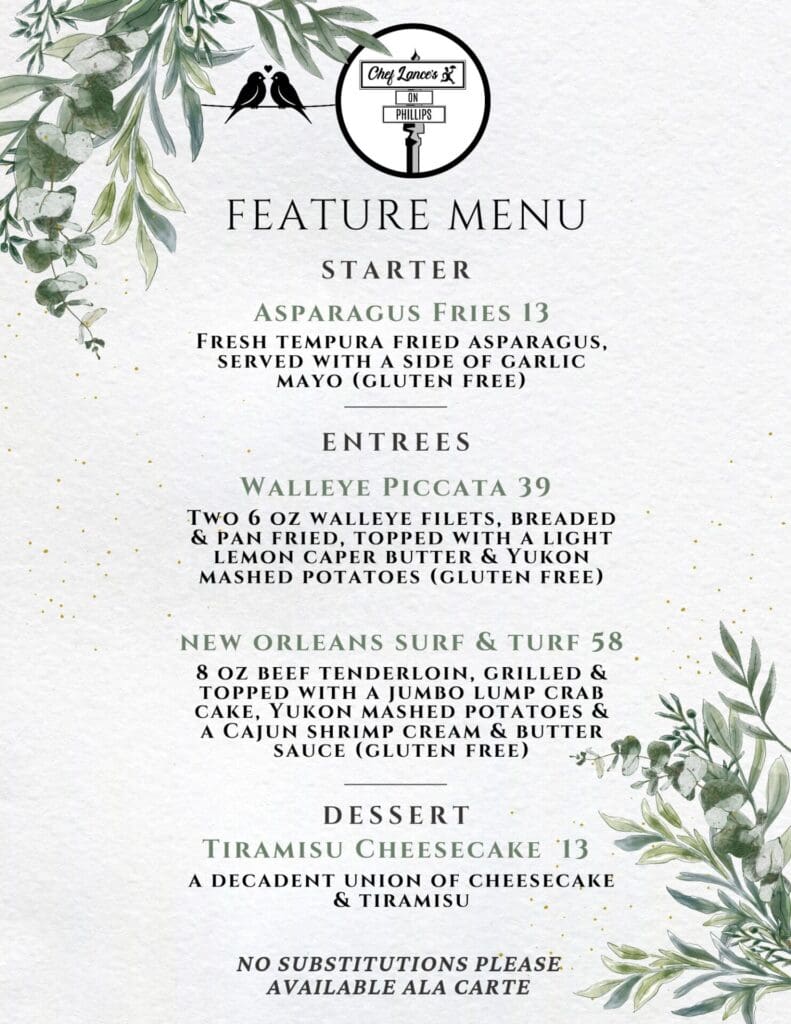 Here’s the featured menu for September at Chef Lance’s on Phillips.