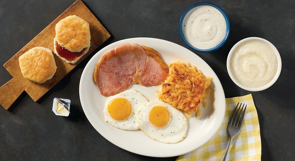 New menu items for fall have arrived at Cracker Barrel. Choices include Sausage & Egg Hashbrown Casserole, Butter Pecan French Toast Bake, Butter Pecan Sticky Buns, Cinnamon Roll Skillet, Herb-Roasted Chicken and the burger BBQ Bacon Smokestack. Returning breakfast favorites are Uncle Herschel’s Favorite and the lighter platter Good Morning Breakfast, along with Big Easy Steak & Shrimp for lunch or dinner. On the weekend, the kitchen serves two Southern fried chicken specials: Nashville Hot or Honey Butter.