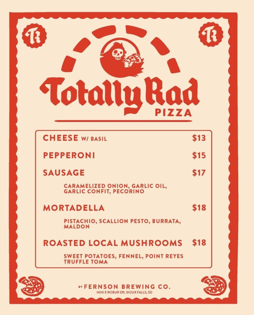 Fernson Brewing Co. is having a Totally Rad Pizza pop-up Friday at the north-side brewery. Pizza will be served from 5:30 to 7 p.m., and the taproom will be open from 3 to 9 p.m. The address is 1400 E. Robur Drive.