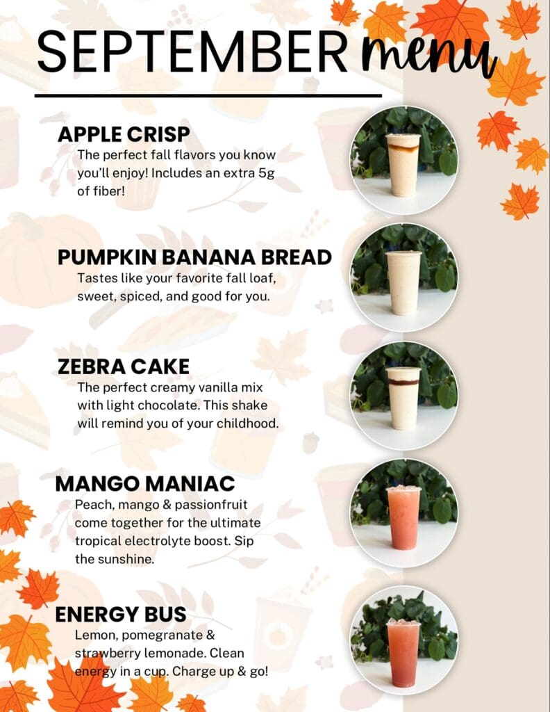 Here are the September featured drinks for Fit Revolution Nutrition.