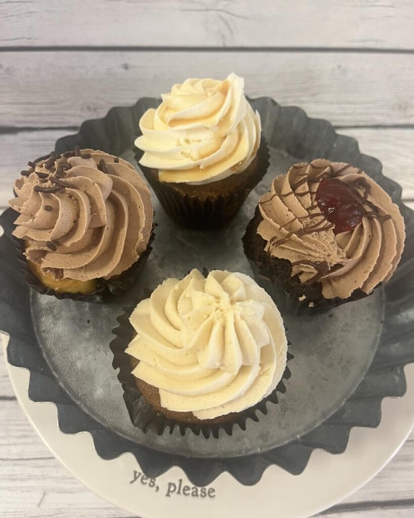 New cupcake flavors for fall at Sugar Palace by Emily in Harrisburg are brown sugar cream cheese pumpkin, caramel apple, Midnight Raspberry and Classic Duo with vanilla cake and chocolate buttercream.