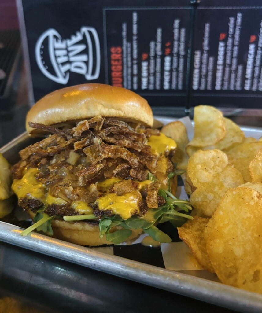 The featured sandwich for September at The Dive is the Crispy Bacon Jam Burger with housemade bacon jam, crispy onions, arugula and honey sriracha mayo.