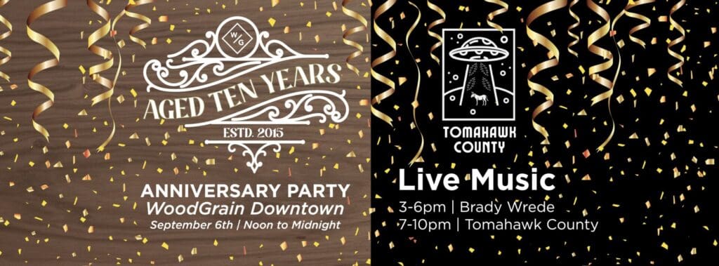 WoodGrain Brewing Co. is celebrating its 10th anniversary Saturday at the downtown location with barrel releases of Cocobolo and 10-Year Plan. Doors open at noon. Brady Wrede will perform from 3 to 6 p.m., and Tomahawk County will play from 7 to 10 p.m. WoodGrain already has tapped its reboot of Smash Cascade, the first beer it made. The original crew gathered to brew it one more time.
