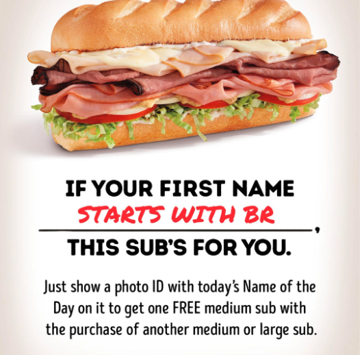 Firehouse Subs is celebrating the holidays with its Name of the Day special. Each day features different names, and those people can get a free medium sub with the purchase of a medium or large one. Check here each day to see the chosen names: firehousesubs.com/nameoftheday.
