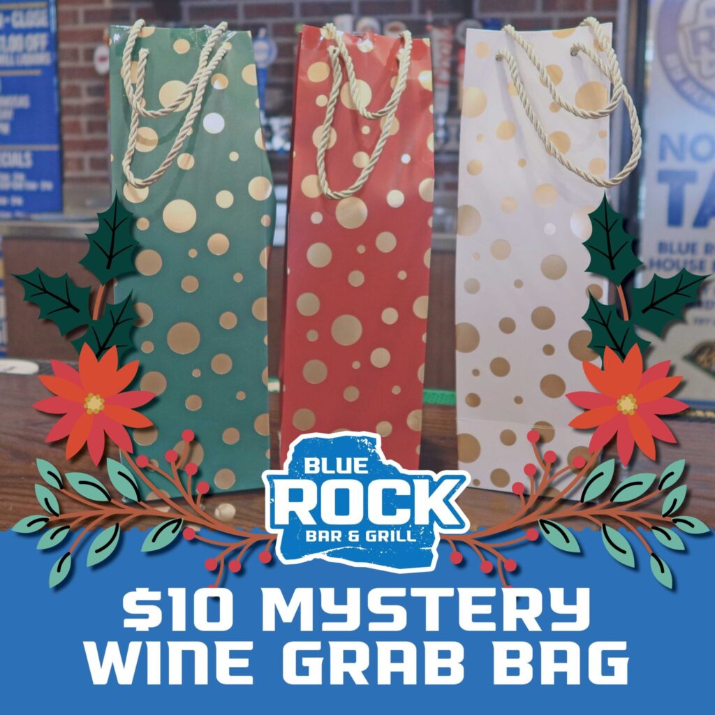 Stop by Blue Rock anytime to get a $10 mystery wine grab bag. Wines range in value from $10 to $50.