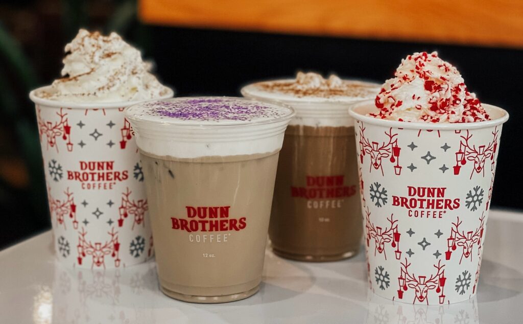 Dunn Brothers Coffee has a holiday drink menu with choices like Candy Cane Mocha, Cookie Butter Nirvana, Spiced Sugar Plum Latte and Spiced Eggnog Nirvana.