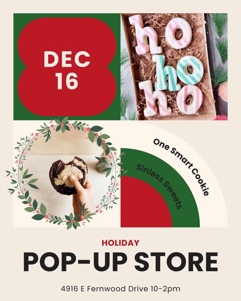 The sisters behind Sinless Sweets and One Smart Cookie are having a holiday pop-up sale from 10 a.m. to 2 p.m. Saturday at 4916 E. Fernwood Drive.