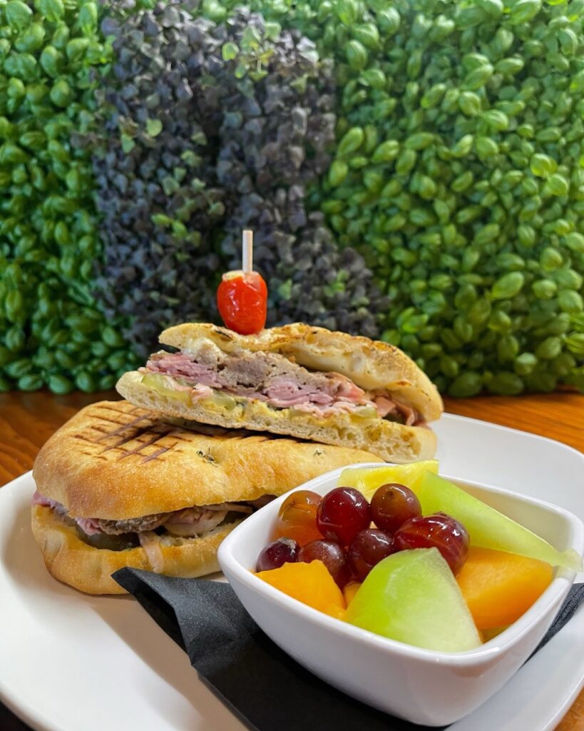 The September lunch special at R Wine Bar & Kitchen is The Cubano Panino. It’s layered with ham, carnitas, Swiss cheese, pickles, mayo and mustard on schiacciata bread.
