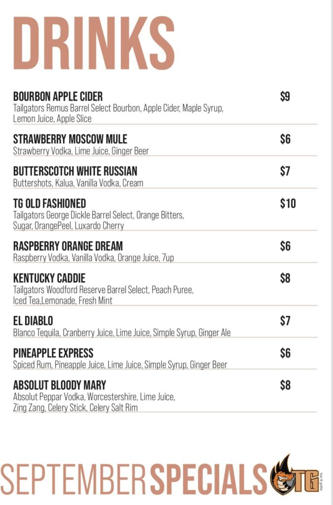 Check out the September specials at Tailgators Grill & Bar in Brandon.