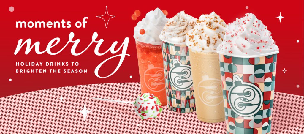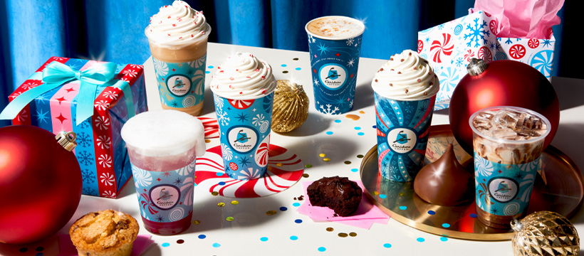 - Caribou Coffee: Ho Ho Mint Mocha, Spicy Mocha, Vanilla Oat Nog Latte, Cranberry Dark Chocolate Espresso Shaker and Cranberry Energy Drink with Coconutmilk Cold Foam. There’s also a new Chocolate Truffle Brownie.