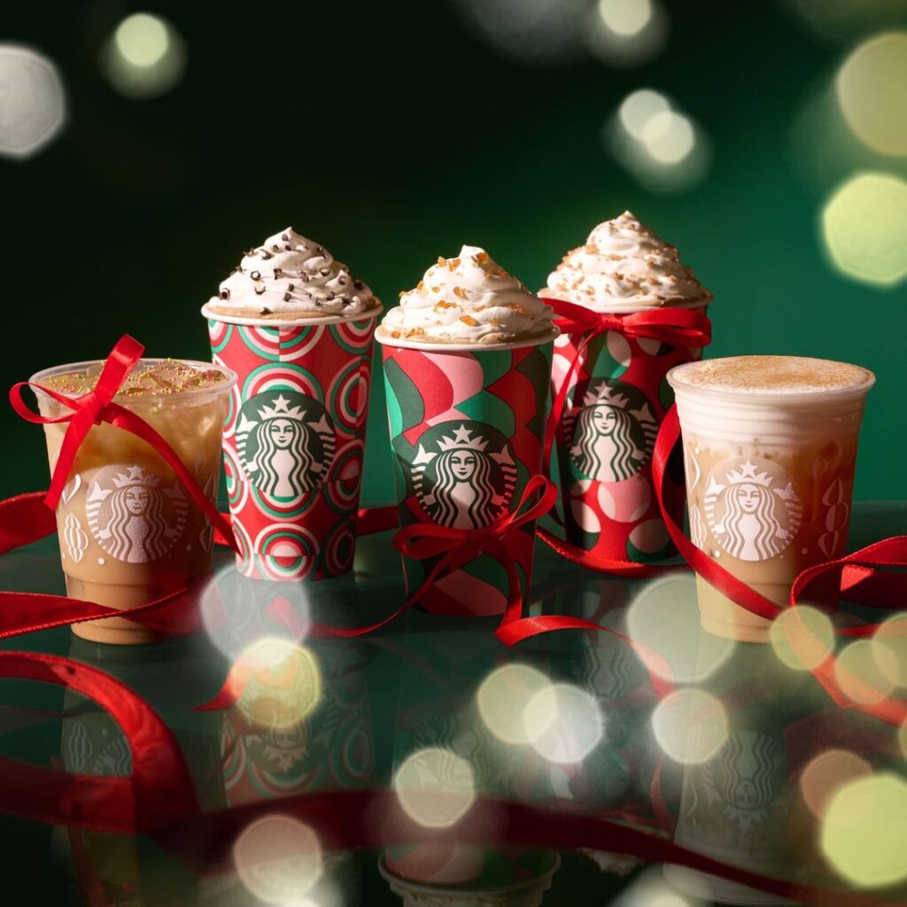 - Starbucks: Iced Sugar Cookie Almondmilk Latte, Peppermint Mocha, Caramel Brulee Latte, Chestnut Praline Latte and Iced Gingerbread Oatmilk Chai.