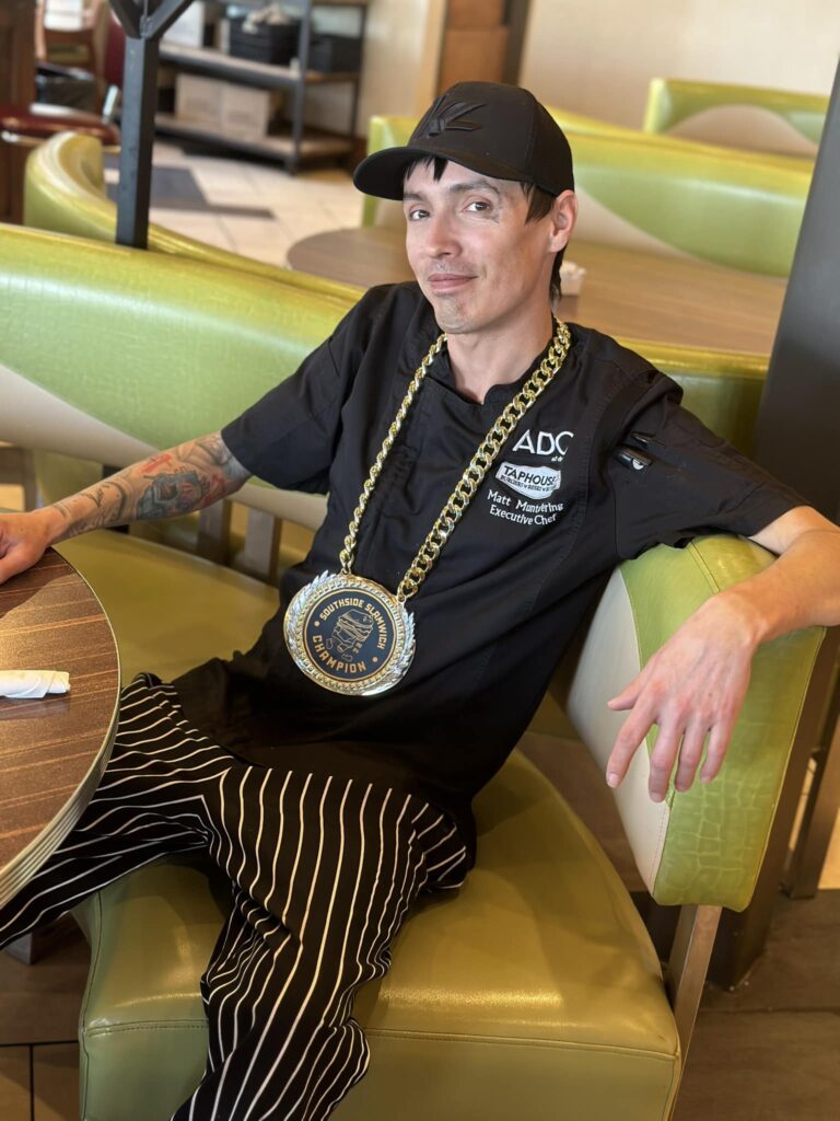 The competition featured a dozen restaurants with new sandwiches that were sold throughout February. ADC’s sandwich, created by Chef Matt Muntefering, had the top rankings. The Latimer features cherrywood cold-smoked rib roast, fontina cheese, sauteed Italian greens, crispy prosciutto, roasted tomato, stewed morel mushrooms, holly and roasted bell pepper aioli and arugula chimichurri on toasted ciabatta.