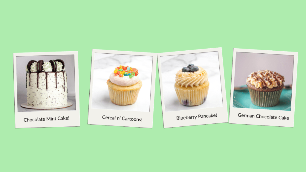 The bakery’s March flavors are Cereal n’ Cartoons, which also has a gluten-friendly option, and Blueberry Pancake. German Chocolate is available every Wednesday this month, and the featured cake for March is Chocolate Mint.