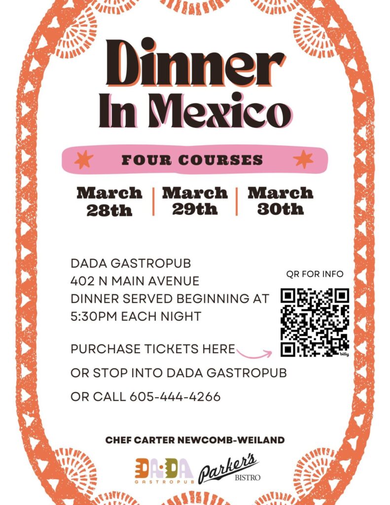 Last year, when Parker’s Bistro closed temporarily for remodeling, the restaurant teamed up with DaDa Gastropub for a few special Mexican dinners. This year, A Night in Mexico II, a four-course meal with new dishes, will be offered on three nights later this month. Tickets, which are $85, must be purchased in advance – and the dinners sold out last year. The dates are March 28-30.