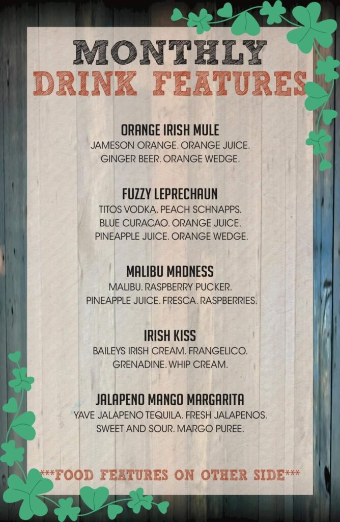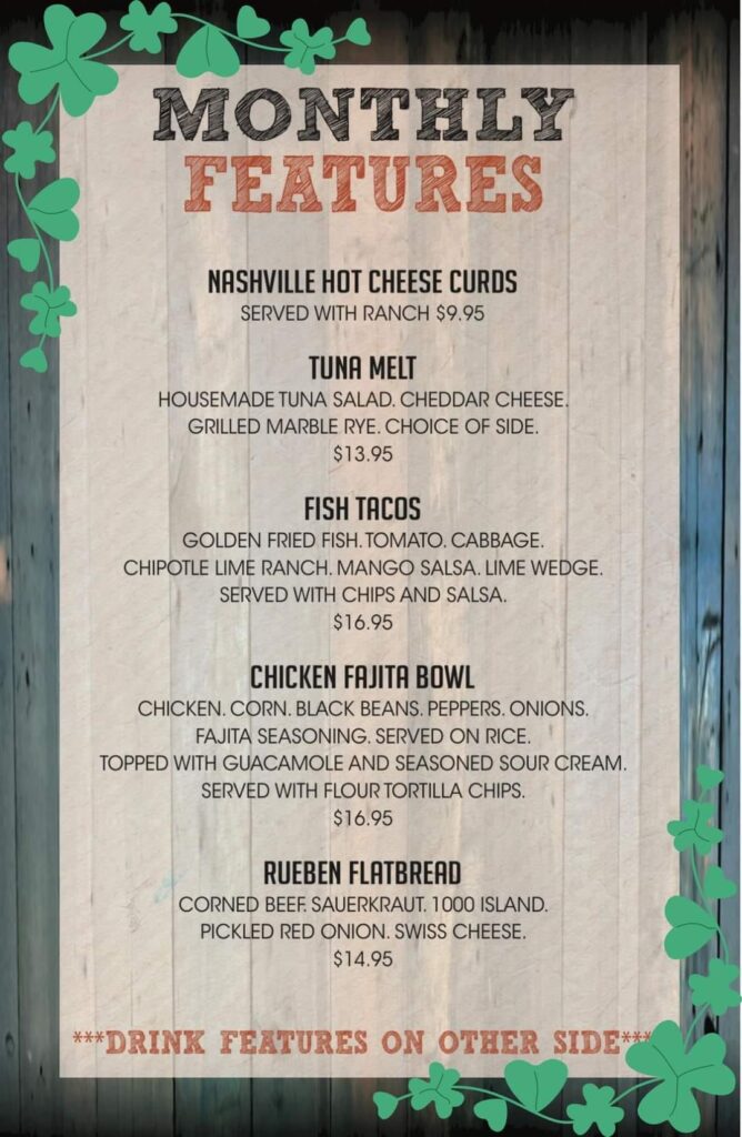 Here are the featured food and drink menus for March at Tinner’s Public House and Tinner’s North.