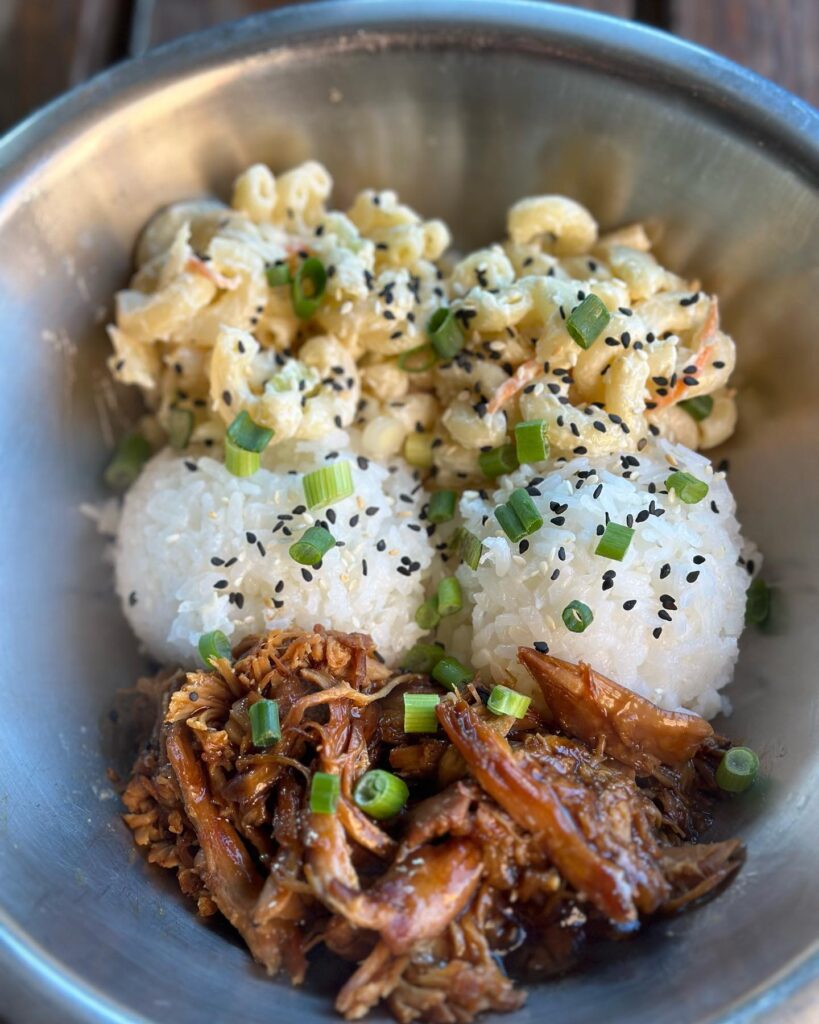 The Hawaiian Plate is back at the downtown restaurant, taking ramen’s place on the menu. The shoyu chicken comes with Island Mac Salad and rice. This year, there’s an option of substituting fried tofu or bulgogi beef for the chicken. Other new menu items are the BBQ Burger and a pulled pork sandwich.