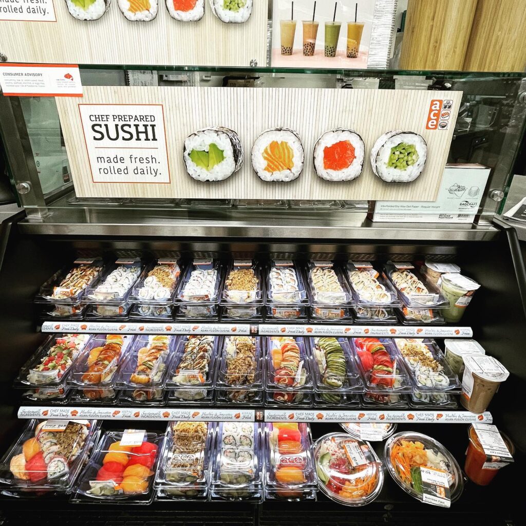 The new grab-and-go section features a wide variety of chef-crafted sushi made with sustainable ingredients. It’s made fresh daily.