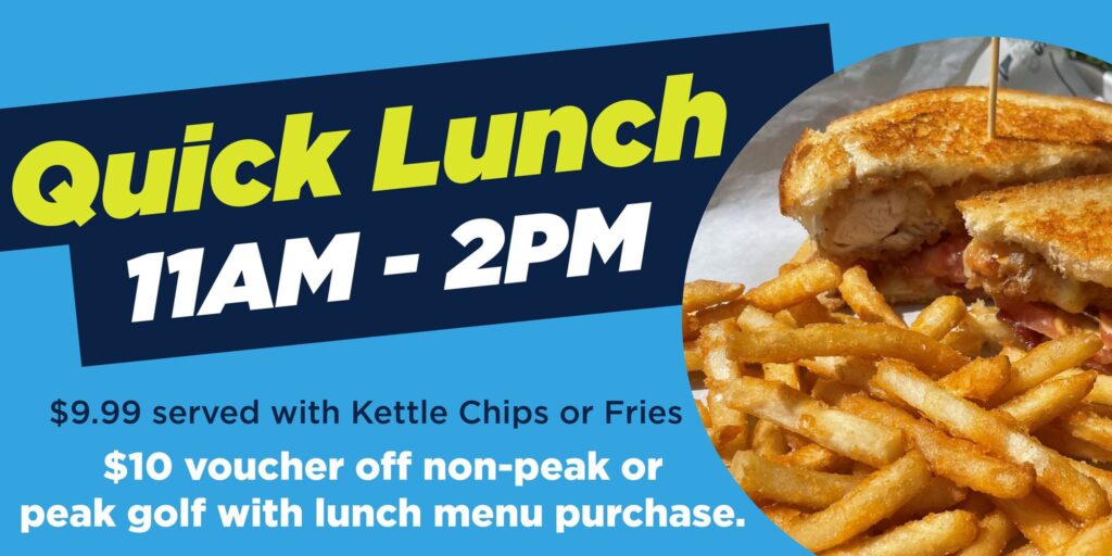 Great Shots has new options available for a quick lunch. It’s served from 11 a.m. to 2 p.m. and includes a $10 voucher toward golf. Options include a smoked BBQ pork sandwich, chicken tender melt, turkey bacon chipotle ranch wrap, taco salad and classic double cheeseburger.