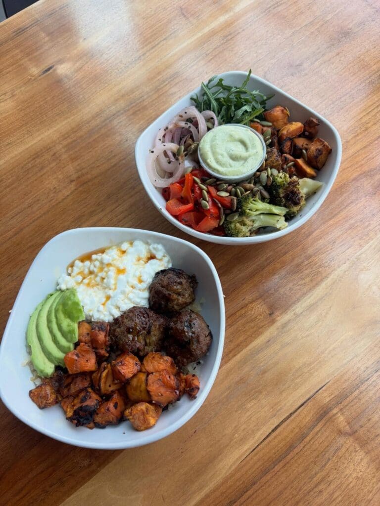 Two bowls have been added to the menu at Daily Clean Food & Drink. Golden Glow features bison meatballs, cottage cheese drizzled with hot honey, roasted sweet potato and fresh avocado on a base of cauliflower rice. Garden Hearth starts with a quinoa base and is topped with roasted broccoli, sweet potato, bell pepper and onion. There’s also arugula, pumpkin seeds and a garlic and herb dressing.