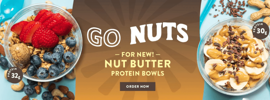 Nekter Juice Bar has introduced two limited-time nut butter protein bowls: the Peanut Butter Power Bowl with 30 grams of protein and the Blueberry Almond Power Bowl with 32 grams. The base of the peanut butter bowl is a blend of cashew milk, banana and peanut butter, with a dash of agave and vanilla. It’s topped with peanut butter protein granola, peanut butter drizzle, banana slices and cacao nibs. The blueberry almond bowl has almond butter and blueberries blended with vanilla whey protein and cashew milk. It’s topped with granola, strawberries and blueberries with an almond butter drizzle.