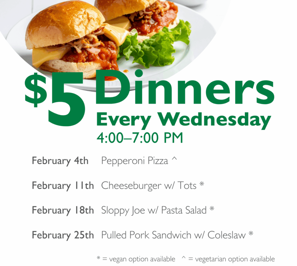 Here’s the lineup for the $5 Community Dinners in February at the Sioux Falls Food Co+op. They’re served from 4 to 7 p.m. every Wednesday.