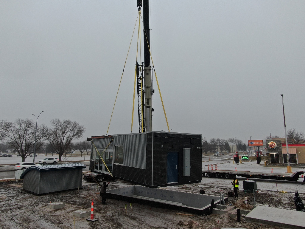 Coffee chain 7 Brew used a crane last month to set its pre-built drive-thru shop on a foundation along Louise Avenue on The Empire Mall campus. The company announced last summer that it was expanding to Sioux Falls and originally said it expected to open in the fall. Now, it’s shooting for an opening in April. 7 Brew will have staff of 50 and is taking applications at hp7brew.com.