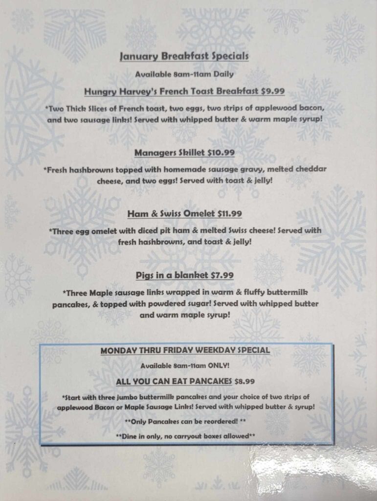 Here are the January breakfast specials at Crack’d Pot Restaurant.