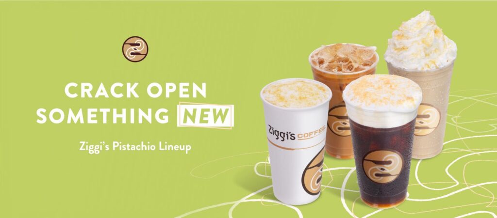 Ziggi’s Coffee is featuring pistachio-flavored drinks as the new year begins. Offerings include the Pistachio Oat Milk Latte, Pistachio Blender and Pistachio Cold Foam. New seasonal treats are Frosted Lemon Bread and gluten-free Lemon Poppy Seed Raspberry Swirl Bread.
