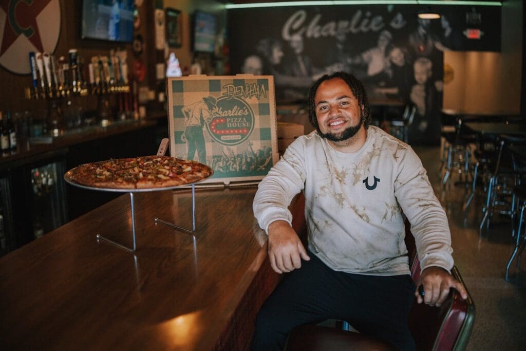 Charlie’s Pizza is teaming up with Denham and has created a signature pizza for the singer that will be available Saturday. The Denham Special features pepperoni, sausage, ham, bacon, pineapple, jalapeno and garlic – all served in a custom collector’s box designed just for him that includes his autograph. Fifty carryout boxes are available.