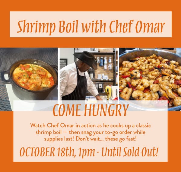Chef Omar Thornton is having a shrimp boil Saturday starting at 1 p.m. at Cooks & Bakers Kitchen. Pre-ordering for $20 bowls are available by calling 605-705-6770.