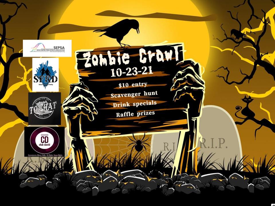 Here’s a chance to participate in a downtown pub crawl/scavenger hunt. The Sioux Empire Roller Derby is hosting a Zombie Crawl fundraiser from 4 to 6 p.m. Saturday for its practice venue. The pub crawl will begin at the Top Hat, where participants will receive scavenger hunt instructions that will dictate their crawl. The fun will wrap up at Club David with raffle prizes. Entry is $10.