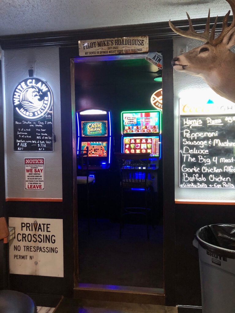 Pilot Mike’s has four TVs, and they’re usually showing football, NASCAR or golf. There are six video lottery machines, a pool table, dart machine and jukebox.