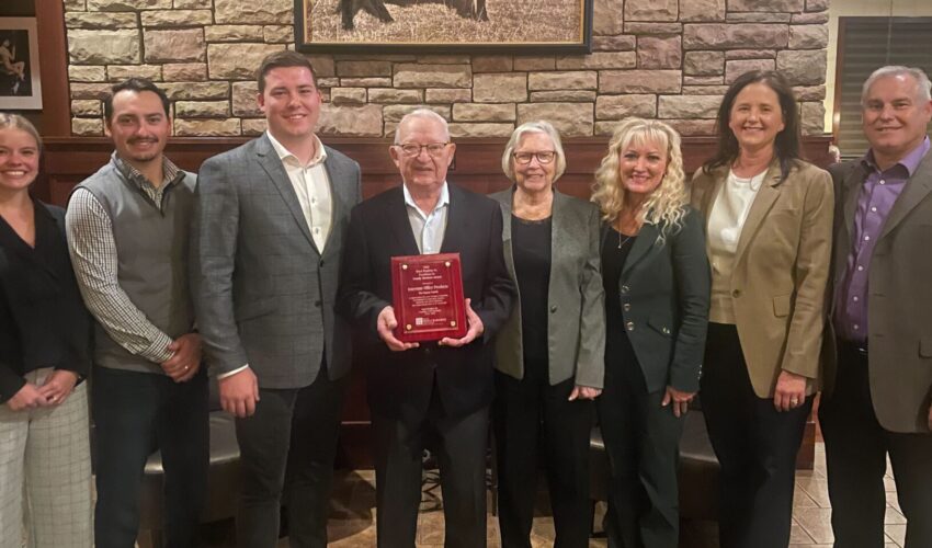 Larry Michels, on the left, thanks retiring Lance Darland, on the right.