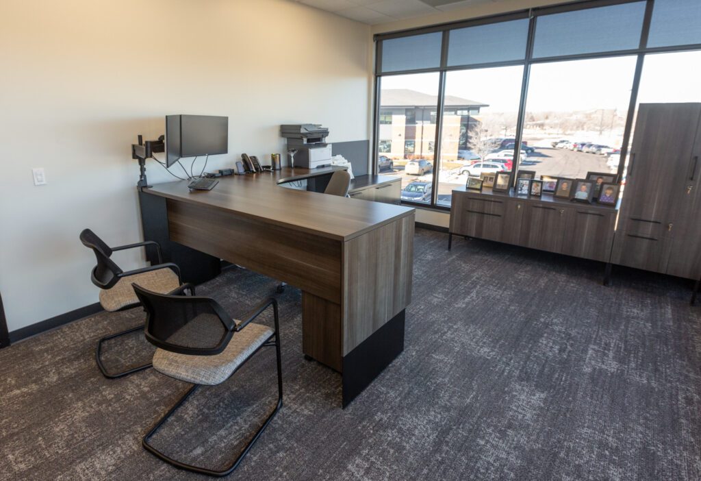 The floor plan for the space already had been established when Interstate Office began helping with furnishings, “and the individual offices were large, so there was plenty of room for storage,” Tufvesson said.