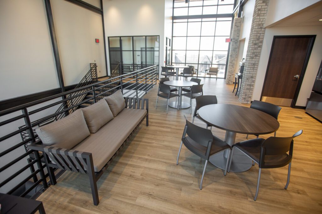 “They also have a first-floor lounge in the reception area, and then their second-floor break room opens down below, with a patio off the second floor, so it’s a nice variety of common areas.”