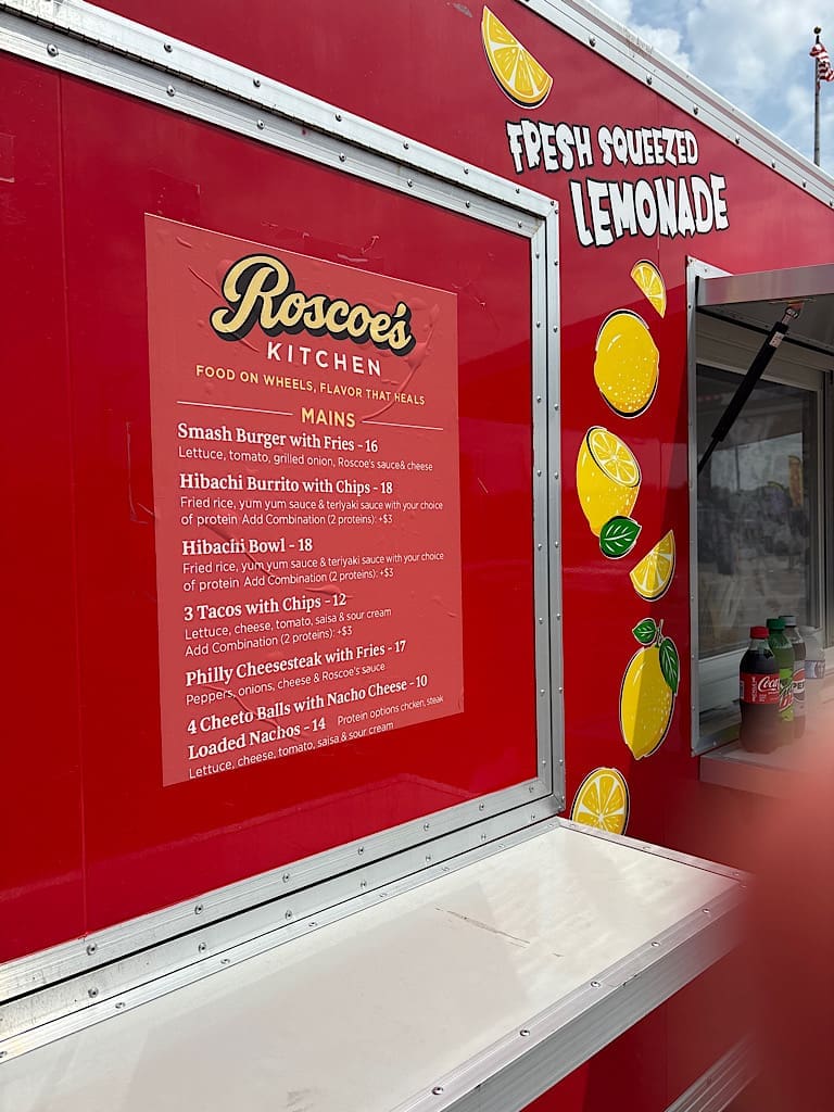 Roscoe’s Kitchen serves 32-ounce homemade lemonade with a choice of flavoring and slushies with rotating flavors.