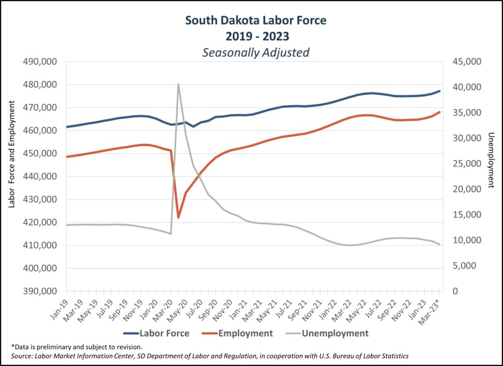 At 1.9 percent, South Dakota had the lowest unemployment rate in the United States in March.