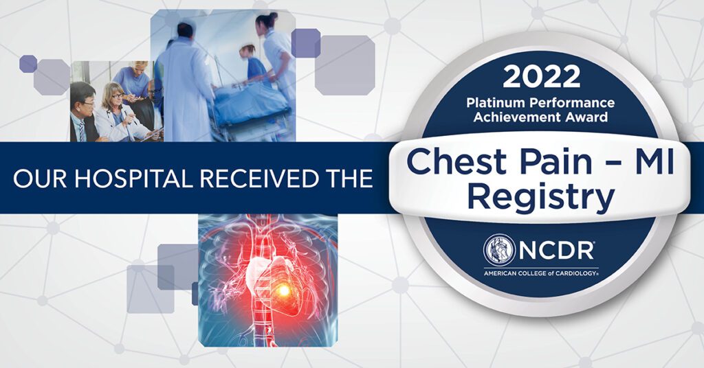 Sanford Health has received the American College of Cardiology’s NCDR Chest Pain ̶ MI Registry Platinum Performance Achievement Award for 2022.