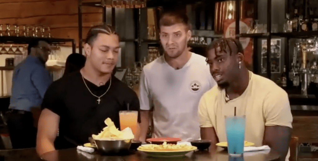 The new rules for NIL are actually the theme of the ad. It opens with players sitting at a table at Applebee’s talking about how that, as serious athletes and students, they would never do anything just for money.